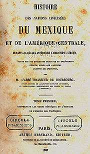 - 1857—59 - Histoire des nations civilisées du Mexique et de l'Amérique Centrale, durant les siècles antérieurs à Christophe Colomb ... (4 vols., Paris);