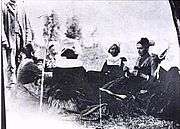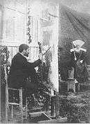 Photograph of Dagnan at his easel while his wife Walter poses in Breton costume. Taken in 1886