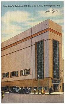 - Roberts, Jeff (March 7, 2009). "After nearly 110 years in downtown Birmingham, Bromberg's closes retail store". AL.com. Retrieved October 28, 2016.