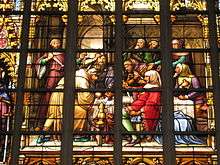 Five windows added in the nineteenth century depict the development of the cult of the Miracle; these were donated by Belgian kings Leopold I and Leopold II and other nobles, this time linking the Miracle to the contemporary Catholic opposition to secularism.[1] The 1870 quincentenary of the Miracle was marked with celebrations.[12]
