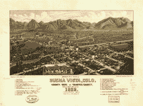 The Arkansas River Valley and the area of what would become Buena Vista was first settled in 1864 by settlers drawn to the area by the plentiful water which made the land suitable for agriculture.[6] By 1880, the county seat had moved from Granite to Buena Vista, but by 1928 Salida had a larger population so the county seat was moved once again. By 1894, Buena Vista had electricity, telephone service, street lights, parks, cemeteries, and schools.[6] Travelers, speculators, and miners traveling up the Arkansas Valley towards Leadville made Buena Vista a popular stagecoach stop, and railroad depot following the 1890s. While certainly experiencing economic ups and downs, the valley's agricultural economy has made the area more resistant to the 'boom, bust' cycle of mining towns.