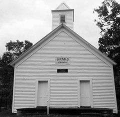Buffalo Church is a historic Methodist church located near Palestine, Wirt County, West Virginia. It was built between 1884 and 1886, and is a one-story, oblong log structure with exterior weatherboarding of beech wood and interior finish of wood boards on walls and ceiling. It is painted white on the inside and outside. Also on the property is the church cemetery, and three outbuildings: two pit toilets and a storage building that were constructed by workers associated with the Work Projects Administration.[2]