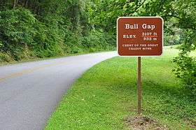 - ↑ "Bull Gap Gap". Geographic Names Information System. United States Geological Survey. Retrieved July 22, 2014.