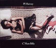 C'mon Billy was the second single released on PJ Harvey's 1995 album To Bring You My Love. As one of the more solemn tracks on the album it depicts a woman begging for the aforementioned Billy to come home and meet his son.[1] Her singing style is described as "frantic purrs" and has an accompanying string section similar to songs from previous albums. Despite this added string section the song is credited as being a clear example of Harvey's sound change, critics have stated that the song was possibly a "glimpse of the Blues Explosion and Portishead."[2][3] The song charted 29 on the UK Charts and had moderate airplay in the UK.[4]