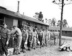 Soldiers lined up for lunch at Camp Gordon Johnston | |