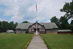 Camp Washington-Carver Complex, also known as West Virginia 4-H Camp for Negroes, is a historic camp and national historic district located near Clifftop, Fayette County, West Virginia. The district encompasses four contributing buildings and two contributing structures, the most notable being the Great Chestnut Lodge, a log building of unusual size and structural character. It is the largest log structure built entirely of chestnut in West Virginia. It was built in 1941-1942, and is a 1 1/2 story building in the form of a modified Latin cross with a gabled block (Assembly Hall) and a gabled wing or ell (Dining Hall). Also on the property are a log cottage (1940), two frame dormitories (1942), a water tower (1940), and a small pond (1940). The camp was established by an act of the West Virginia legislature in 1937, and developed as a project of the Works Progress Administration starting in 1939.[2]