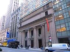Fifth Church of Christ, Scientist is an historic Classical Revival-style Christian Science church building located at 9 East 43rd Street near Madison Avenue and Grand Central Terminal in Manhattan, New York City. Built in 1921 on the former site of St. Bartholomew's Episcopal Church. Fifth Church of Christ, Scientist, is unusual in that it occupies part of the first two stories of a 21-story office building that was originally named the Canadian Pacific Building.[1] The church auditorium seats 1800 people.[2]