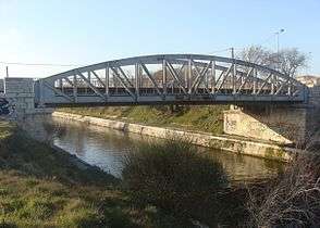 The canal has a total length of 81 kilometres (50 mi) from Marseille to Arles.[1] The canal consists of the Rove Tunnel from the harbor on the Mediterranean, the section leading to the Étang de Berre, the Bouc à Martigues canal (or Caronte canal), the Rhône à Fos canal and the Saint-Louis canal.[2] There are two channels at Martigues, the Gallifet canal and the Baussengue canal, used only for recreational boats. Martigues island, between the two canals, is divided by the small canal of Saint-Sébastien, which runs along its length.[2] The complex of waterways at Martigues has led to its being called the "Venice of Provence".[2]