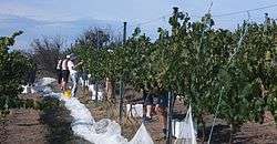 About two thirds of the vines are red wine varieties, and one third are white.[2]