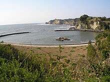 Cape Hachiman (Isumi, Chiba) (八幡岬 Hachiman-misaki) is a cape on the Pacific Ocean, in the Ōhara area of the city of Isumi, in the southeast area of Chiba Prefecture, Japan. There are two Cape Hachimans located in close proximity to one another: Cape Hachiman in Isumi, and Cape Hachiman a few kilometers to the south in the city of Katsuura City. The cape is named after Hachiman, a mythological Japanese god of archery and war.