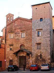 The Church of the Jail of Sant'Ansano, Italian: Chiese delle Carceri di Sant'Ansano, also known as the Chapel or Oratory of Sant'Ansano in Castelvecchio, is a small, medieval, Roman Catholic religious building located on via Tommaso Pendola in the Terzo di Città of the city of Siena, region of Tuscany, Italy. Adjacent to the tower is the former Istituto Santa Teresa.Coordinates: 43°18′52″N 11°19′42″E / 43.31448°N 11.328202°E