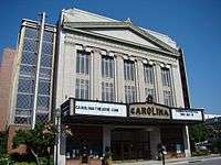 The Carolina Theatre of Greensboro, North Carolina is Greensboro, North Carolina's only remaining historic theatre. It was billed as “The Showplace of the Carolinas” when it opened on Halloween night, 1927. The 2200 seat structure was built for the Saenger-Publix Company, cost over $500,000 to build and was one of the first commercial buildings to be air conditioned in the state.[1]