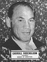 Carroll Rosenbloom (March 5, 1907 – April 2, 1979) was an American businessman. He was the owner of two National Football League franchises; he was the first owner of the Baltimore Colts, and later switched teams, taking ownership of the Los Angeles Rams.[1][2]
