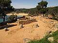 The settlement, which seems to have been inhabited from the 6th century BC to the 1st century AD, was protected by a wall and two square towers. Archaeologists, first in the 1930s and 1940s, and now in a series of excavations begun in 2001, have discovered 64 storage pits and two water cisterns, as well as pottery, amphorae (both locally made and imported), millstones, weights for fishing nets, lamps, agricultural tools and surgical instruments, coins, pieces of bronze, Iberian inscriptions, and the bases of two columns.[1]
