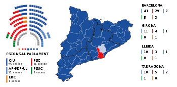 | Graphic of the results in the Catalan Parliament election, 1984, based in seats and constituencies. |