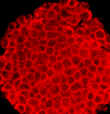 As previously mentioned, the same properties of catenin that give it an important role in normal cell fate determination, homeostasis and growth, also make it susceptible to alterations that can lead to abnormal cell behavior and growth. Any changes in cytoskeletal organization and adhesion can lead to altered signaling, migration and a loss of contact inhibition that can promote cancer development and tumor formation.[17][18] In particular, catenins have been identified to be major players in aberrant epithelial cell layer growth associated with various types of cancer. Mutations in genes encoding these proteins can lead to inactivation of cadherin cell adhesions and elimination of contact inhibition, allowing cells to proliferate and migrate, thus promoting tumorigenesis and cancer development.[7] Catenins are known to be associated with colorectal and ovarian cancer, and they have been identified in pilomatrixoma, medulloblastoma, pleomorphic adenomas, and malignant mesothelioma.[4]