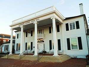 Katharine Cooper Cater Hall, also known as the Old President's Mansion or the Social Center, is a structure on the National Register of Historic Places on the campus of Auburn University, in Auburn, Alabama. Designed by Joseph Hudnut and built for $17,000, Cater Hall was constructed in 1915 as the residence for the president of Auburn University (then the Alabama Polytechnic Institute). In 1938, a new president's home was built, and the structure became the social center for the new Quad dorms when they were built to the south of the mansion in 1940. In the late 1970s, the building was renovated to contain administrative offices and today houses Auburn University's educational support services divisions.[2]