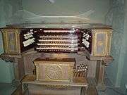 The original Kilgen console was moved into the basement museum, and can be viewed by visitors.