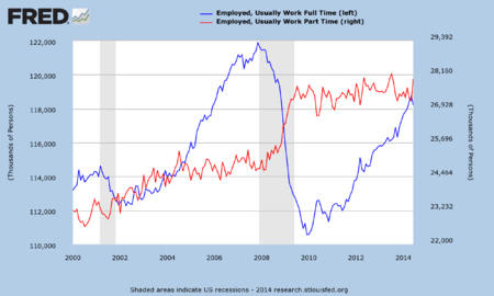 - ↑ "FRED Database-Full Time and Part Time Workers-Retrieved June 2013".