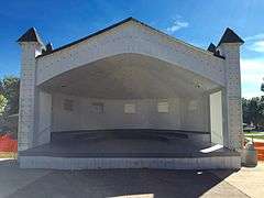 The Central Park Bandstand, also known as the Music Pavilion, is a historic bandshell located within Central Park in Orion, Illinois. The bandstand was built in 1913 following a series of successful outdoor concerts in the park. Local engineer J.C. Ericson built the structure in the then-recently popularized bandshell form, which projected sound toward the audience through its rear wall. The bandstand was completed in three weeks; its opening concert hosted the largest crowd that the park had ever held until that time. From its inception until 1925, the bandstand continued to host concerts, usually once per week; movie screenings and church services were also held at the bandstand. Beginning in 1947, the bandstand became an event stage for the Midwest Corn Show, which later became the Orion Fall Festival; the structure is now mainly used during the festival.[2]