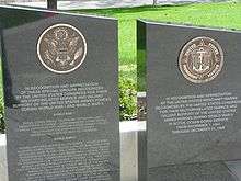 During the November 22, 2005, Cerritos City Council meeting, a controversy erupted as to whether there should be a sixth pedestal around the pool with the emblem of the Merchant Marines. After a very long public discussion, a compromise was reached where it was decided to put a pedestal with the emblem of the Merchant Marines, but place that pedestal off to the side and not include it with the emblems of the 5 primary branches. In order to be sensitive to other groups, it was also decided to have a pedestal honoring all the groups recognized by Congress for the contributions during World War I and World War II.[2]