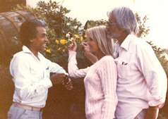 Steven Spielberg and Chandran Rutnam on location in Sri Lanka during the filming of Indiana Jones and the Temple of Doom