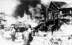During the Second Sino-Japanese War (1937–45), the strategic location of Changsha made it the focus of four campaigns by the Japanese to capture it from the hands of the Chinese Nationalists: these campaigns were the 1st Changsha,[8] the 2nd Changsha, the 3rd Changsha, and the 4th Changsha. The city was able to repulse the first three attacks, thanks to Xue Yue's leadership, but ultimately fell into Japanese hands in 1944 for a year until the Japanese were defeated in a counterattack and forced to surrender.[9][10] Before these Japanese campaigns, the city was already virtually destroyed by the 1938 Changsha Fire, which was a deliberate fire ordered by Kuomintang commanders who mistakenly feared the city was about to fall to the Japanese; Generalissimo Chiang Kai-shek had suggested that the city should be burned so that the Japanese force would gain nothing after entering it.[11]