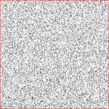 If the chaos game is run with a square, no fractal appears and the interior of the square fills evenly with points. However, if restrictions are placed on the choice of vertices, fractals will appear in the square. For example, if a vertex cannot be chosen twice in a row, this fractal appears: