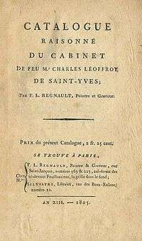 Catalogue of 1805 public auction : Catalogue raisonné du Cabinet de feu Mr. Charles Léoffroy de Saint-Yves. Estampes, tableaux, dessins, miniatures, sculptures, livres etc... Paris, 1805, F.L. Regnault, peintre & graveur et Silvestre, libraire