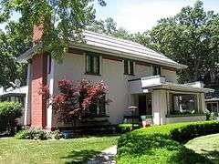 The house was designed by Prairie School architectural firm Tallmadge & Watson. It is the only building by the architects in Kankakee. The firm designed the house in 1911; three years later it was featured in a publication entitled Fireproof Houses of NATCO Hollow Tile.[4] On June 3, 1982, the house was recognized by the National Park Service with a listing on the National Register of Historic Places. On August 22, 1986, it was also listed as a contributing property to the Riverview Historic District.[1]