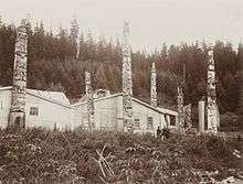 Newcombe began to interest himself in the botany of North America and made many trips to Haida Gwaii (formerly the Queen Charlotte Islands) by boat. In the process he became very interested in the Haida and started to collect their artifacts to "preserve" them from, what was then thought to be, the demise of the native culture.[2] Newcombe and others were driven by the "fear that 'pure' Northwest Coast cultures were disappearing through depopulation and assimilation". In 1897, George Amos Dorsey asked him to collect Haida artifacts for the Field Columbian Museum in Chicago. Dorsey, an American, was known for his haste and he had to advise James Deans who had been a guide in the area that he should just keep quiet. This was required as the local missionary John Henry Keen lambasted Deans and his unidentified, but American, collaborators for desecrating the graves of the local natives in their hunt for Northwest Coast artifacts.[3]