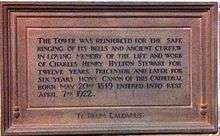 Charles Henry Hylton Stewart was Choral Scholar and Organist of St Catharine's College, Cambridge.[2] On James Pyne's departure, he acted as interim Organist of Chichester Cathedral and was formally appointed in May 1874.[3] The following year he left to take Holy Orders and was successively Minor Canon Precentor of Chester Cathedral (1877–89), Vicar of New Brighton (1889 - 1904),[4] and Rector of Bathwick, Bath (1904–16).