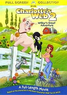 Charlotte's Web 2: Wilbur's Great Adventure is a 2003 American animated direct-to-video adventure film, and the sequel to the 1973 film Charlotte's Web. It was produced by Paramount Pictures (as the logo is seen on worldwide releases), Universal Cartoon Studios (as the logo is seen on international releases), and Nickelodeon; and distributed by Paramount Home Entertainment in North America and Universal Studios Home Entertainment overseas.