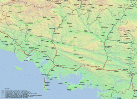The main line was Gourin - Lorient - Meslan - Lochminé - Vannes - La Roche-Bernard.