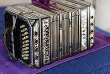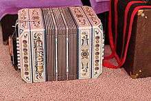 A Chemnitzer concertina is a musical instrument of the hand-held bellows-driven free-reed category, sometimes called squeezeboxes. The Chemnitzer concertina is most closely related to the bandoneón (German spelling: Bandonion), more distantly to the other concertinas, and accordions.