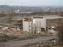 The southern end of the canal in Chesterfield is being redeveloped as part of a £300 million project called Chesterfield Waterside. This will provide housing and amenities in an area which is currently derelict land. The project involves the creation of a short length of new canal to create an island in the centre of the site, navigation being restored to a length of the river, and a new basin at the southern edge of the site. Funding for the canal work was provided by a grant of £0.5 million from the East Midlands Development Agency.[17] The basin was completed and was opened in October 2009, although it remains isolated from the River Rother, to which it will be connected by a lock, while a back-pumping facility will supply it with water. Outline planning permission for the whole site was granted on 15 March 2010.[18] In April 2012, the project was awarded a £2.4 million grant by the Sheffield City Region Local Enterprise Partnership Board. This will fund the connecting lock and the provision of sewers and access roads, to facilitate the subsequent development of the 62-acre (25 ha) site.[19]