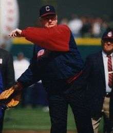 During his tenure as President of the Cleveland Indians baseball team, Peter Bavasi asked players how the team's uniforms should look.[7] Bavasi has described Joe Carter and Pat Tabler suggesting that Chief Wahoo be added to the hats, with Tabler predicting that it would "sell like crazy".[7] Bavasi recalls expressing concern that it would offend Native American groups, but that player Bert Blyleven reassured him, "Nah, it shouldn't. Really looks like [manager] Phil Seghi."[7] Blyleven made a similar remark to Sports Illustrated, and the magazine described the resemblance as "uncanny".[13] Tabler's prediction was ultimately borne out, with hat sales increasing significantly after the reintroduction of Chief Wahoo.[14] The revised hat design has been described as a change "in keeping with Major League Baseball's trend toward 'old-style' simulacra."[15]