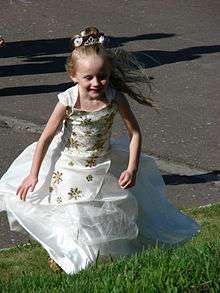 More recently gender-specific children's clothing has become a contentious issue. According to some feminist thinkers, children's clothing has become increasingly segregated, with young girls especially being expected to wear pink. Peggy Orenstein writes in her book, Cinderella Ate My Daughter, that pink-coloured and princess-themed clothes are almost ubiquitous for young girls in shops in America. She sees this as problematic because it limits girls to not only one colour, but also to one spectrum of experience, and it "firmly fuses girls' identity to appearance."[5] According to Historian Jo B. Paoletti, pink and blue only became associated with girls and boys respectively from the 1940s onwards.[6][7]