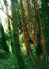 The predominant vegetation is that of the Valdivian forest, a dense forest formed by perennial trees, shrubs and climbing plants. The rainforests are made up of evergreen southern beech (Nothofagus), and some native conifers, including the magnificent alerce (Fitzroya cupressoides). Extensive bogs and swamps are found in the hills. The Chilean rhubarb is also very common.