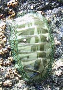 Chiton glaucus, common name the green chiton or the Blue Green Chiton (Boyle, 1970) , is a species of chiton, a marine polyplacophoran mollusk in the family Chitonidae, the typical chitons. It is the most common chiton species in New Zealand.