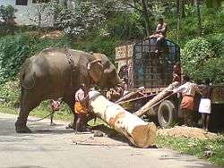 An Elephant used to load timber in Chittar | |