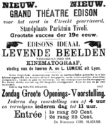 He began a traveling film show called the Grand Théatre Edison. During the show in Park Tivoli in Utrecht the first Dutch movie was shown, Gestoorde hengelaar by M.H. Laddé.[2]