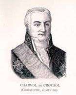 Christophe André Jean de Chabrol de Crouzol (16 November 1771 7 October 1836) was a French politician who served in the administration of Napoleon, then adhered to the Bourbon Restoration in 1814. As Prefect of Rhône he acquiesced in brutal reprisals in 1817 against former supporters of Bonaparte. He was an elected deputy from 1820 to 1822, then was made a peer of France. He served as Minister of the Navy (1824–29) and as Minister of Finance (1829–30). Chabrol resigned before the July Revolution of 1830, unwilling to remain associated with the increasingly repressive government, but remained a supporter of the Bourbon monarchy.