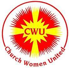 Church Women United (CWU) is a national ecumenical Christian women’s movement representing Protestant, Roman Catholic, Orthodox and other Christian women. Founded in 1941, as the United Council of Church Women,[1] this organization has more than 1,200 local and state units in the United States and Puerto Rico. CWU's members represent 26 supporting denominations and organizations.[2] Offices are located in New York City, Washington DC and at the United Nations.