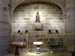 When the new main front was built the Ibiceta family which had their family sepulchre in the chapel decided to transform it to an artistic mausoleum with prayerful sculptures and diverse decorative elements. The chapel contains a round-headed arch sustained by Corinthians columns.