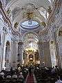 In 1689 the Gothic edifice was demolished as it proved too small for the growing cult of Saint John Cantius, the patron saint of the Jagiellonian University who's laid to rest there.[2] In 1689-1705 the new Baroque church was erected, modelled on Sant'Andrea della Valle in Rome.[1] The architect was a Polonized Dutchman Tylman van Gameren, a chief architect at the court of John III Sobieski. The interior stucco decoration is the work of Baldassarre Fontana, and the polychromy assisted by painters and brothers Carlo and Innocente Monti and Karl Dankwart of Nysa. The painting of St. Anne in the high altar is the work of Jerzy Siemiginowski-Eleuter, court painter of King John III Sobieski. The 18th-century paintings in the stalls showing the life of Saint Anne are by Szymon Czechowicz. In the transept there is an altar of the adoration of the cross to the left, and the tomb of John Cantius to the right.[1]