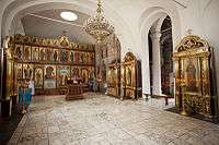 The church is located at the foot of the Mitridatskaya steps (there are 432 steps), which rises to the Mitridat Hill where there are a series of ancient sites. St John's Baptist Church is one of the oldest Christian churches built in the Byzantine architecture style; it was built during the Khazar era in the 8th century.[7] An inscription in the older part of the church reads: "Here lies the servant of God Kyriakos, a son of George, a grandson of Vindira. He died on the month of June 3, induction 10th, in the year 6265 from Adam".[7] This has been interpreted as the year 757 AD. During the period of the Soviet Union, the church was used as a gem museum.[8] Following the restoration works carried out in the 1980s, church services have been resumed since 1990.[7] In 1982, Tatjana Ivanovna Makarova published an article, Archaeological dating of the John the Precursor church in Kerch.[9]