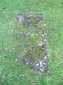 The dog's tooth Norman chancel arch is still untouched and the piscina in the south wall, and two doorways on the opposite wall also appear to be original. The font on the south wall is decorated with crude images of faces, birds and a serpent in a Garden of Eden theme. At first sight it appears to be an unusually well preserved example of a 12th-century font, and carries a label that uses the word "early", but is now thought by historians to be a 19th-century pastiche. A second plain font may date from the 15th century.[2] Further work by the Welsh architect John Prichard[10] was completed in 1875. The west turret was replaced by a bell arch. The east window dates from 1957, and the church was last restored in 1989-91.[6][10] On the east side beside the road there is a garden of rest with a calvary cross. The church sits on land between the road and the river Monnow and a contemporary ceramic mosaic has been installed by Monmouth Town Council. The circular plinth is made of 40 tiles that illustrate and commemorate the Millennium showing over 2,000 years of local history.[5]
