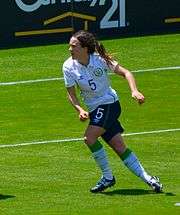 Grant has represented the Republic of Ireland at under-15, under-17,[3] under-19, university and senior level. In 2010, together with Megan Campbell, Dora Gorman, Denise O'Sullivan, Siobhán Killeen and Clare Shine,[21] she was a member of the Republic of Ireland U-17 squad that were runners-up in the 2010 UEFA Women's Under-17 Championship and quarter-finalists in the 2010 FIFA U-17 Women's World Cup. In December 2011, together with Dora Gorman, Megan Campbell, Julie-Ann Russell, Louise Quinn, Grace Murray and Karen Duggan, Grant was included in an FAI scholarship programme for potential senior women's internationals.[22] Grant made her senior international debut in November 2012, in a 5–0 friendly defeat to the United States, replacing Niamh Fahey in the 57th minute.[23] She has subsequently represented the Republic of Ireland in the 2013 and 2014 Cyprus Cups and in their 2015 FIFA Women's World Cup and UEFA Women's Euro 2017 qualifying campaigns.[5][4][24] Grant also represented Ireland at the 2013 and 2015 Summer Universiades.[25][26][27][28]
