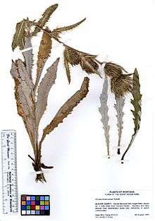 Cirsium hookerianum, common name Hooker’s thistle or white thistle,[2] is a North American species of thistle native to western Canada and the northwestern United States. It is found in the northern Rocky Mountains as well as in some of the northern Cascades and Coast Ranges, in Alberta, British Columbia, Washington, Idaho, Montana, and Wyoming.[3]